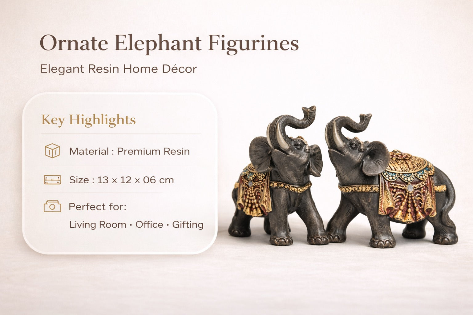 Ornate Elephant Figurine Set – Premium Resin Decorative Elephants for Home Décor, Living Room, Office & Gifting #1254